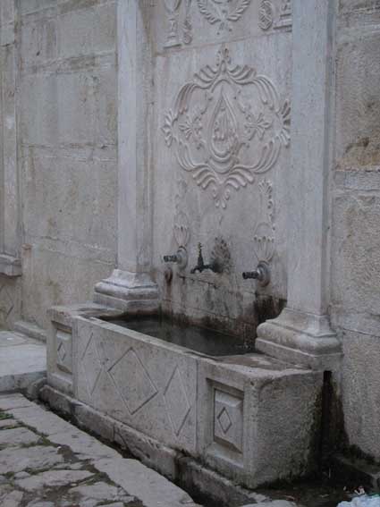 A common sight in Turkey are places to wash yourself. Not head to toe, mind you, but frequently men and women soak their head under the public taps and rinse their feet before going into a mosque. Traditional Turkish baths are tucked away in small corners of the cities and presumably accessible to tourists, although we have not tried one.